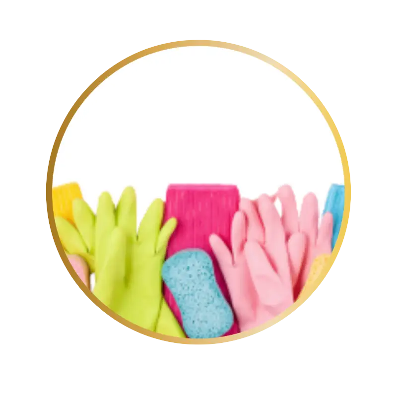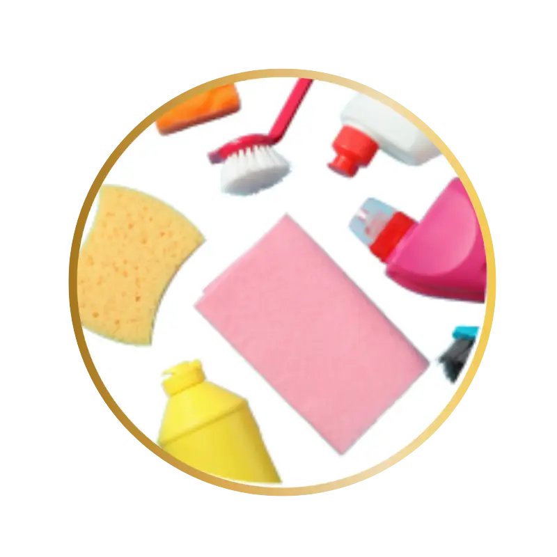 A selection of disposable items such as gloves, wipes, and trash bags to support daily cleaning operations